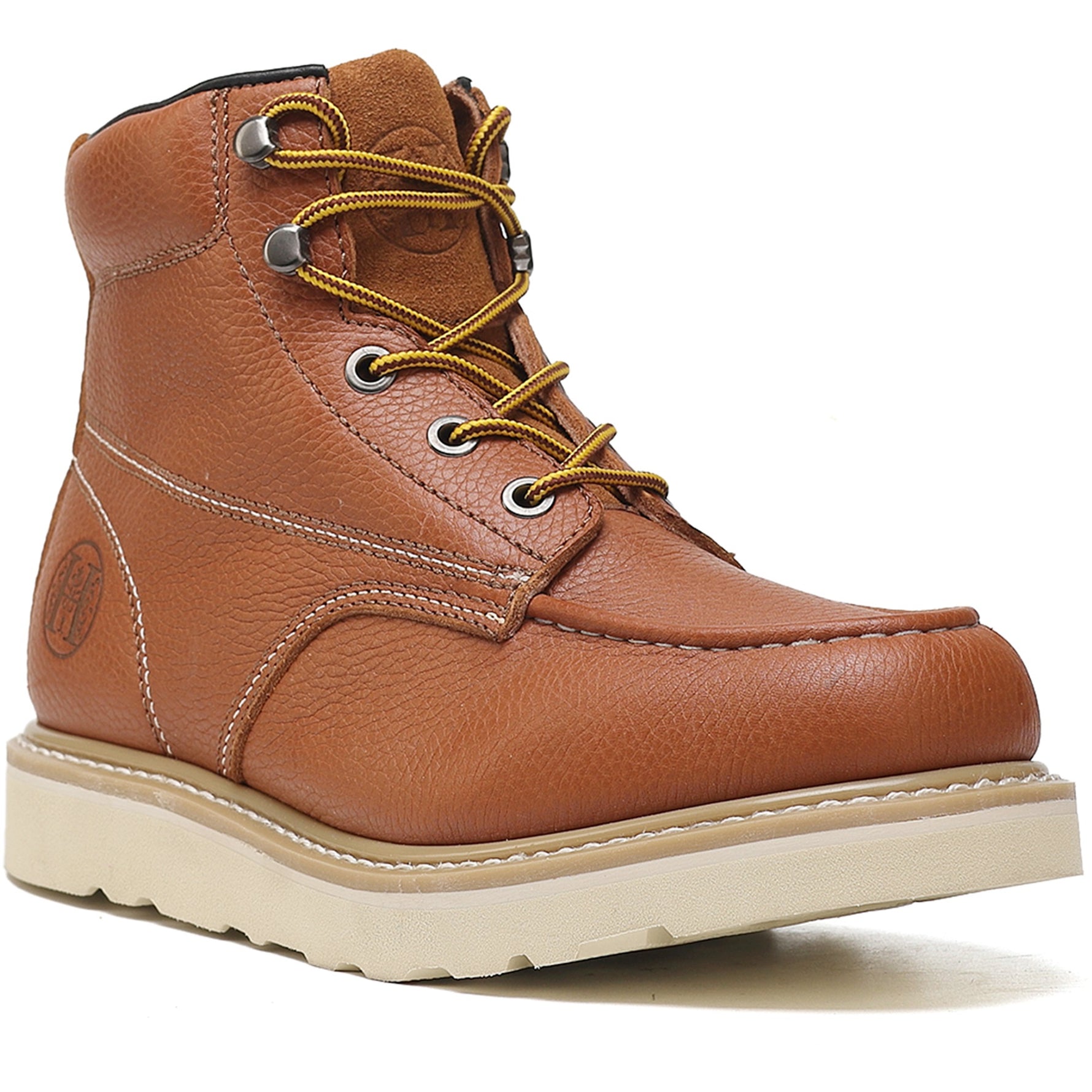 - 🙂LIGHTWEIGHT, COMFORTABLE & ANTI-FATIGUE: Built lightweight, these moc-toe work boots can keep your feet comfortable and stress-free with a breathable lining and fatigue-fighting reinforcement. ☛ PORON insoles in the mens work boots can also provide maximum performance cushioning and impact absorption. Padded collar and tongue provide outstanding ankle support so you will never feel stiff on the heel.