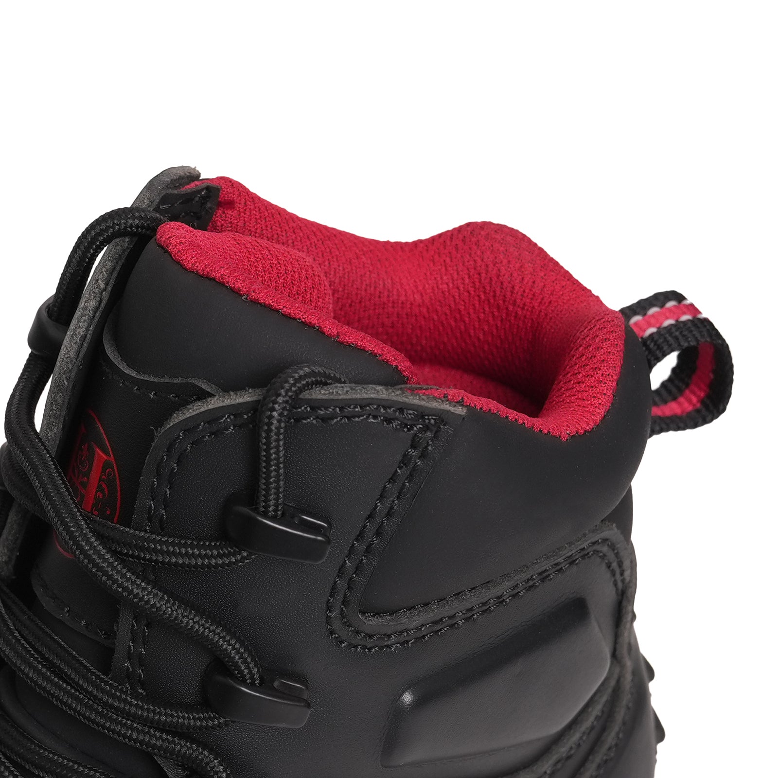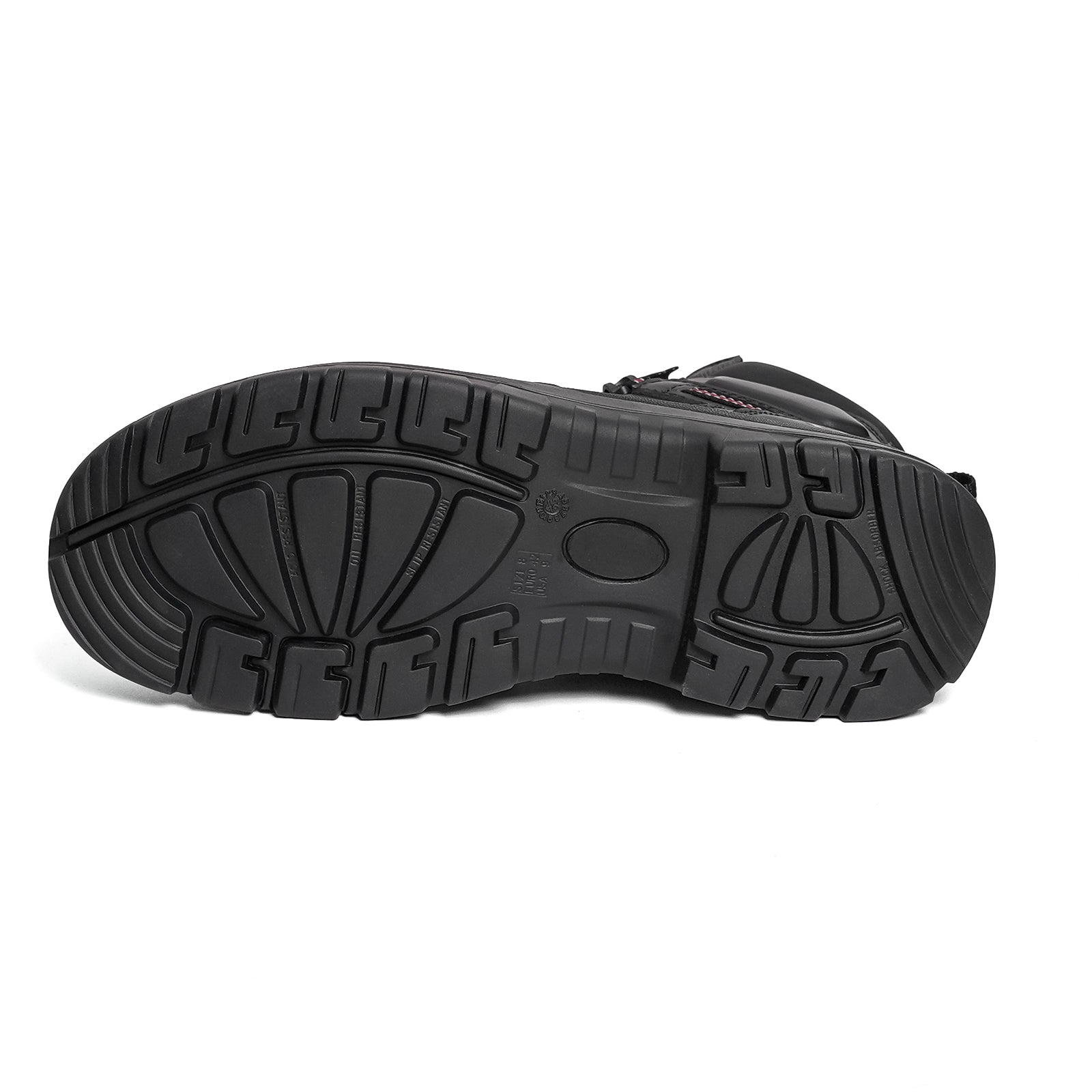 This 6-inch steel toe work boot features a durable black full-grain leather upper with a water-repellent finish for everyday protection. A slip- and oil-resistant PU/rubber outsole, breathable mesh lining, and comfortable PU insole deliver reliable traction and all-day comfort.