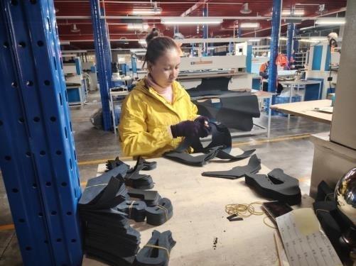 Current status: Currently, 9 stitching lines are in operation, with a total of 350 people.